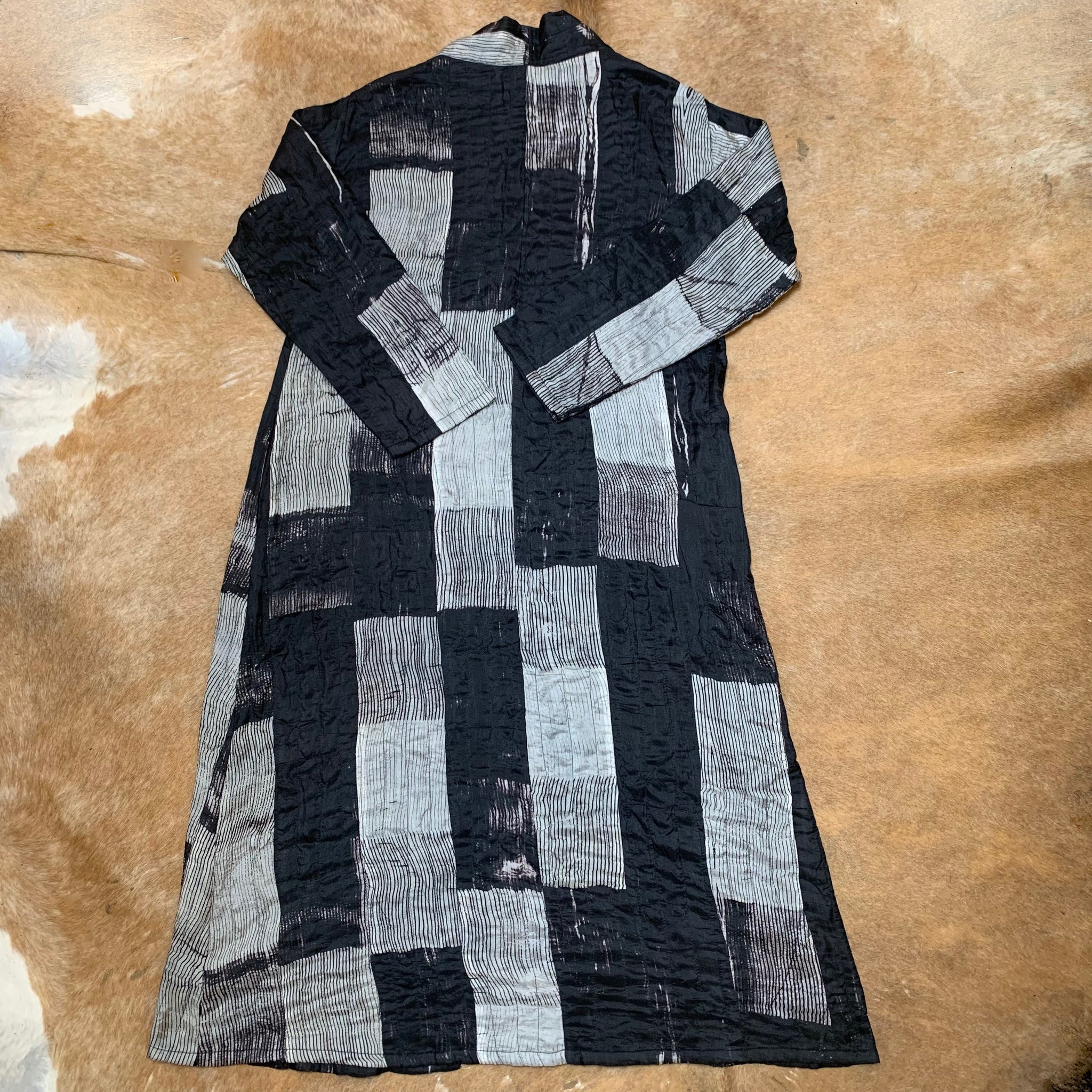 Open Full Length Shibori-Dyed Silk Coat with Pockets